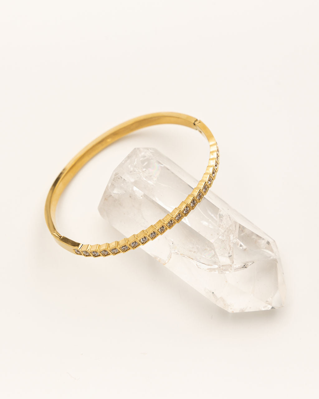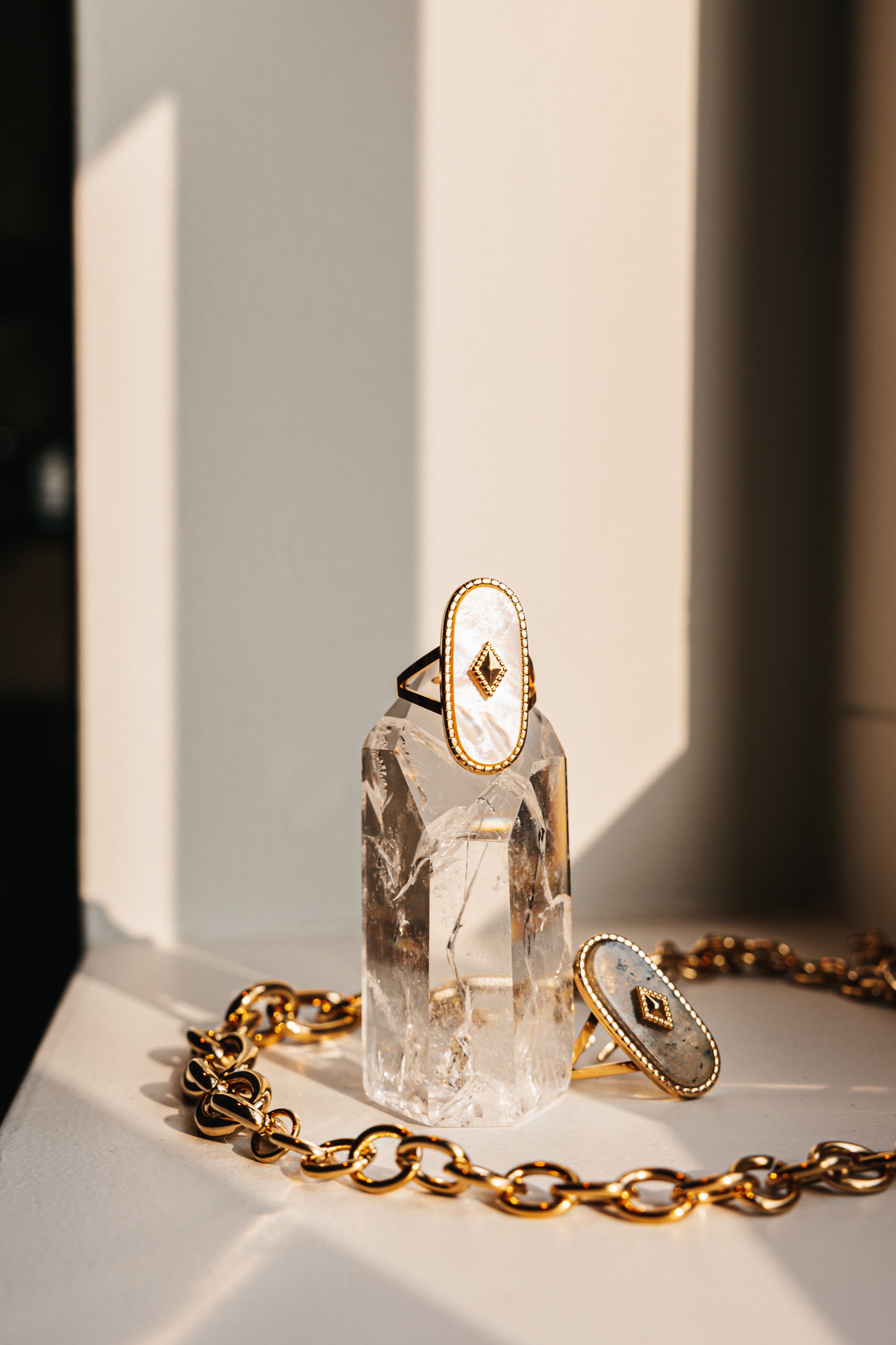 Onze sieraden zijn gemaakt van hoogwaardig roestvrij staal met een duurzame 16K gouden PVD-plating. Deze moderne vacuümtechniek zorgt niet alleen voor een sterke, langdurige glans maar is ook milieuvriendelijker dan traditionele plating-methoden.